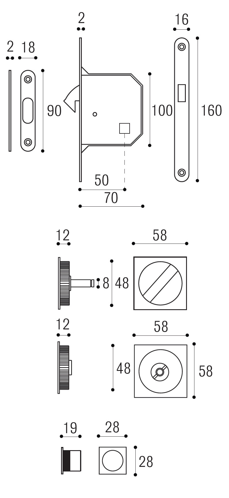 KIT 3C PITAGORA for sliding door with lock for bathroom. | Satined chrome |